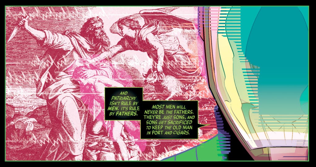 Woden's rambling on lets Ananke know that he has been keeping an eye on Cassandra. She (Ananke) really is a master manipulator. This also shapes Woden conversation with Cassandra next scene. He tries to play it cool, but Ananke has already called him out for being a creep in the next panel.