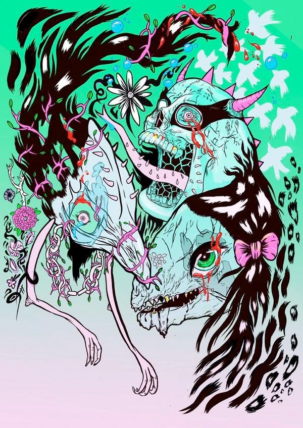 Okay, there actually is something interesting here. Woden talks about being able to do this because he can "take women and forge that they're people." Right before this, he says this is why he doesn't "regret giving up (his) face." You would think it is the opposite. He would put a mask on the women to more easily dehumanize them, like Stormtroopers in STAR WARS. The opposite is the case. He first needs to dehumanize himself. The twisted pleasure he gets here relies on the double knowledge of knowing that these are people despite not treating them as such. As stated before, Woden's pure nihilism is particularly heinous because he is aware of all the arguments for good and yet rejects them out of hand.